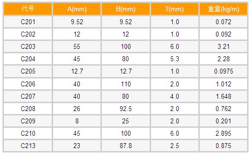 A(mm) | B(mm) | T(mm) | 重量(kg/m) |